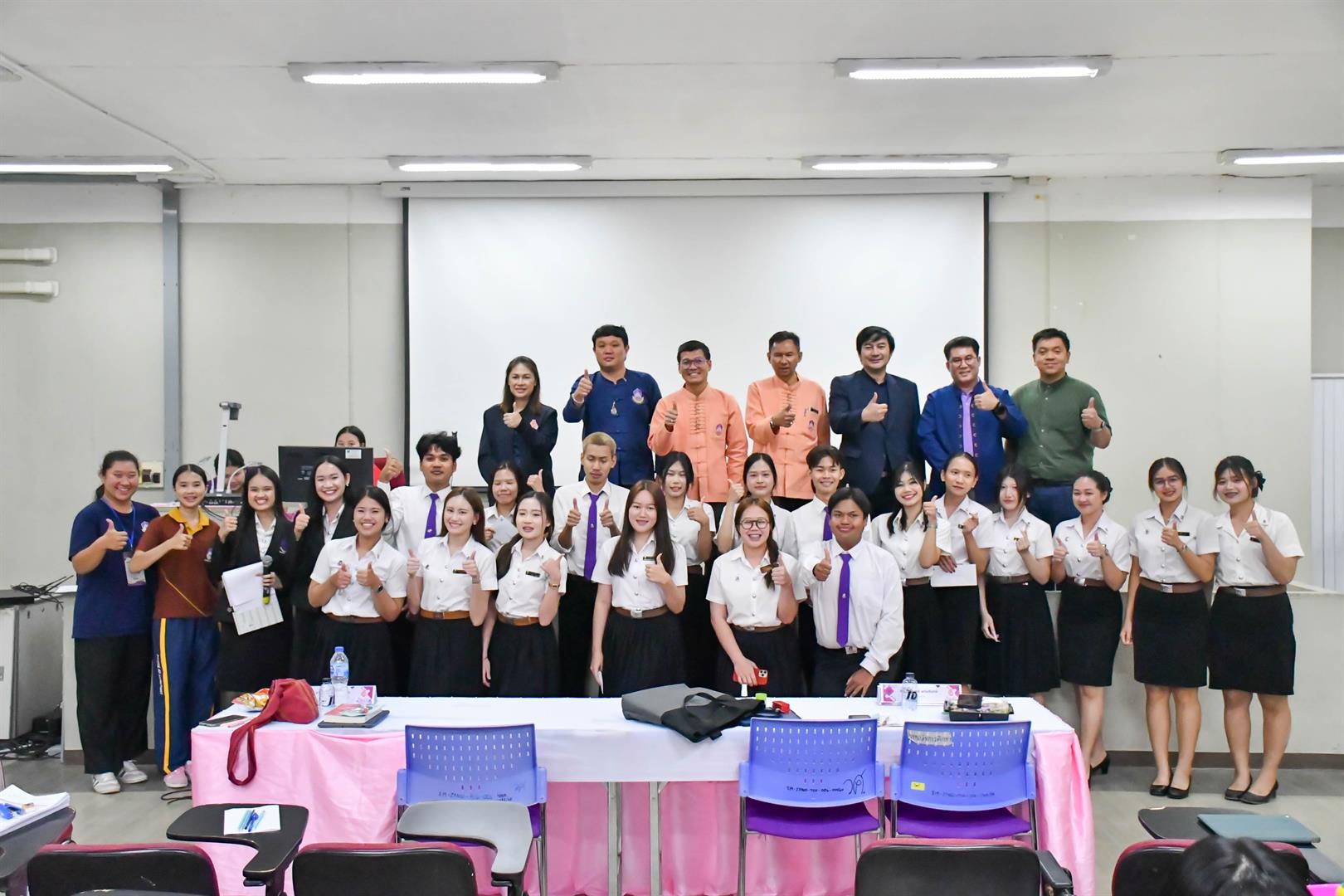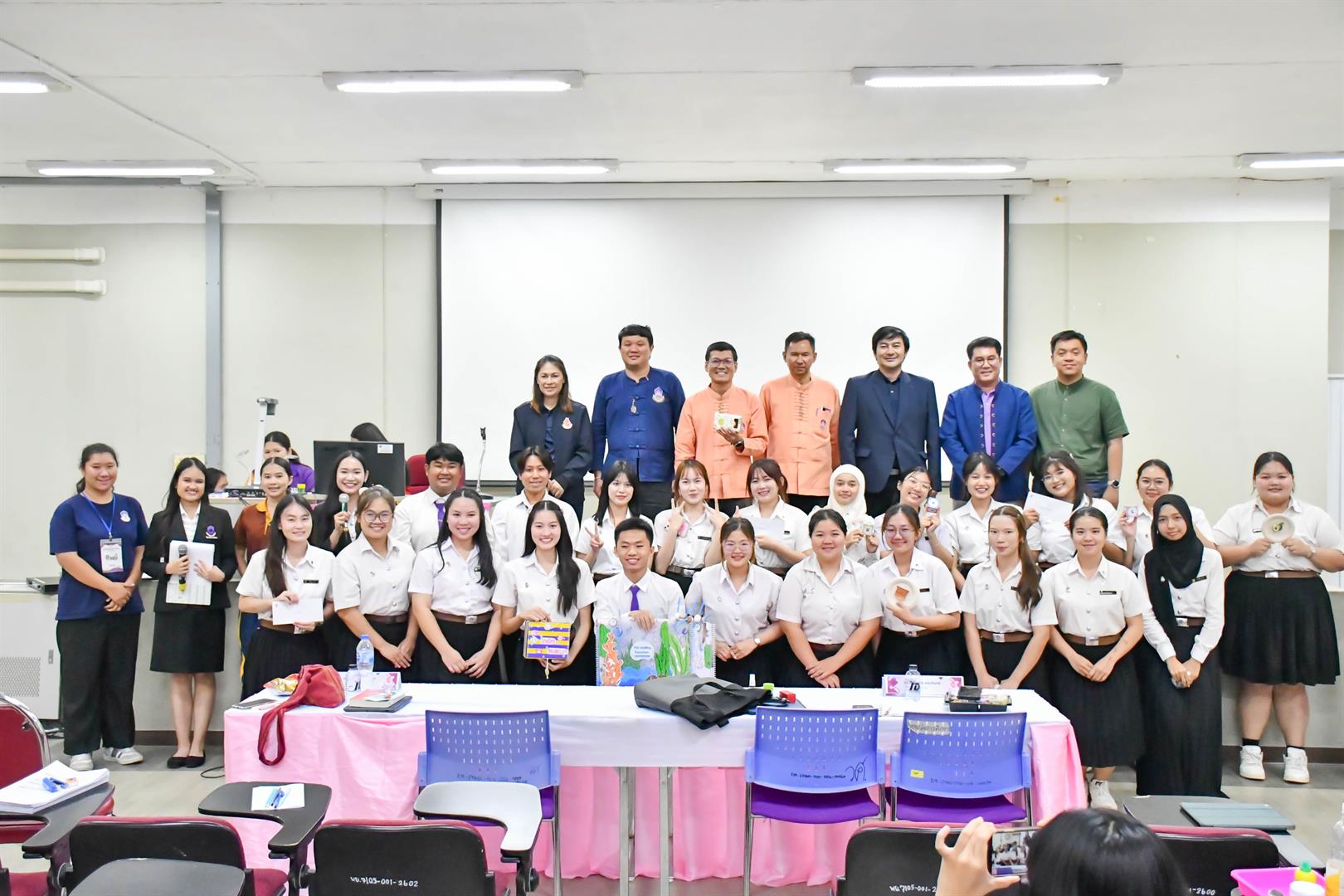 เมื่อวันที่ 18 กันยายน 2568 วิทยาลัยการศึกษา ดำเนินกิจกรรมทางวิชาการ (กิจกรรมพัฒนาทักษะทางด้านสื่อ นวัตกรรม และเทคโนโลยีทางการศึกษา) ประจำปีการศึกษา 2568 ภายใต้โครงการกิจกรรมเสริมความเป็นครูตามหลักสูตรการศึกษาบัณฑิต ณ ห้อง PKY3 อาคารเรียนรวม (PKY) มหาวิทยาลัยพะเยา โดยได้รับเกียรติจาก ผู้ช่วยศาสตราจารย์ ดร.สุนทร คล้ายอ่ำ รองคณบดีฝ่ายบริหารและพัฒนาคุณภาพนิสิต เป็นประธานกล่าวเปิดโครงการฯ พร้อมด้วย ผู้ช่วยศาสตราจารย์ ดร.ณัฐวุฒิ สัพโส ผู้ช่วยคณบดี ผู้ช่วยศาสตราจารย์ ดร.กษิฎิฏฏ์ มีพรหม อาจารย์สาขาวิชาการบริหารการศึกษา นางสาวสุนีรัตน์ ศรีทนต์ นายคมธิต จันตะมะ เจ้าหน้าที่บริหารงานทั่วไป ตลอดจนสโมสรนิสิตและนิสิตชั้นปีที่ 2 วิทยาลัยการศึกษา เข้าร่วมกิจกรรมอย่างพร้อมเพรียง การจัดกิจกรรมในครั้งนี้มีวัตถุประสงค์เพื่อให้นิสิตมีความรู้ความเข้าใจเกี่ยวกับสื่อ นวัตกรรม และเทคโนโลยีทางการศึกษา ตลอดจนเสริมสร้างทักษะในการออกแบบ ผลิต และประยุกต์ใช้สื่อการสอนอย่างมีประสิทธิภาพ อีกทั้งยังเป็นเวทีในการแลกเปลี่ยนเรียนรู้ระหว่างนิสิต คณาจารย์ และผู้เชี่ยวชาญ ภายใต้คำขวัญ “แกร่งกล้าวิชาการ เชี่ยวชาญวิชาชีพครู ชำนาญการสร้างสื่อนวัตกรรม” ทั้งนี้ กิจกรรมได้รับเกียรติจากคณะกรรมการผู้ทรงคุณวุฒิ ได้แก่ ดร.คงอมร เหมรัตน์รักษ์ อาจารย์กลุ่มสาระการเรียนรู้ภาษาไทย โรงเรียนสาธิตมหาวิทยาลัยพะเยา ดร.วัชรินทร์ แก่นจันทร์ อาจารย์สาขาวิชาภาษาไทย คณะศิลปศาสตร์ มหาวิทยาลัยพะเยา และอาจารย์ถิรายุส์ บำบัด อาจารย์สาขาวิชารัฐศาสตร์ คณะรัฐศาสตร์และสังคมศาสตร์ มหาวิทยาลัยพะเยา ร่วมตัดสินการประกวดและให้ข้อเสนอแนะเชิงวิชาการ อันเป็นประโยชน์ต่อการพัฒนาอัตลักษณ์นิสิตวิทยาลัยการศึกษาให้มีความพร้อมในวิชาชีพครูต่อไป สอดคล้องกับเป้าหมายการพัฒนาที่ยั่งยืน (Sustainable Development Goals) SDG 4: ส่งเสริมโอกาสในการเรียนรู้ สร้างการศึกษาที่มีคุณภาพและเท่าเทียม (Quality Education) SDG 9: ส่งเสริมอุตสาหกรรม นวัตกรรม และโครงสร้างพื้นฐานที่ยั่งยืน และSDG 17 : สร้างความร่วมมือเพื่อการพัฒนาที่ยั่งยืน (Partnerships for the Goals)