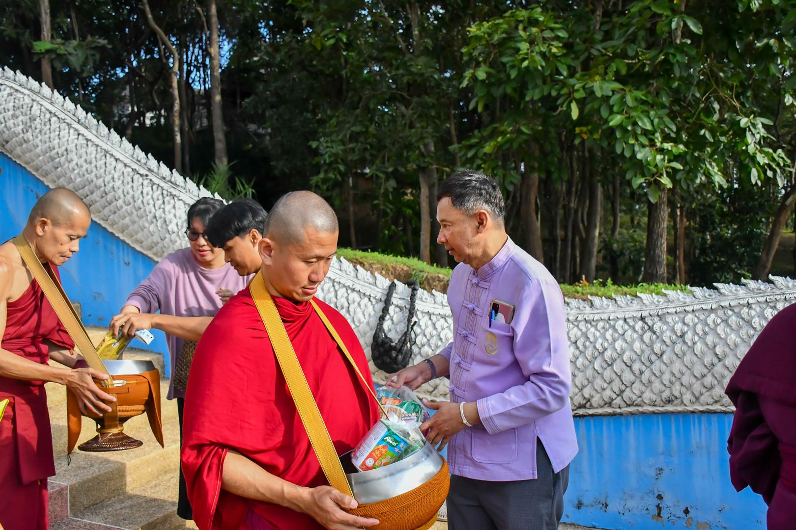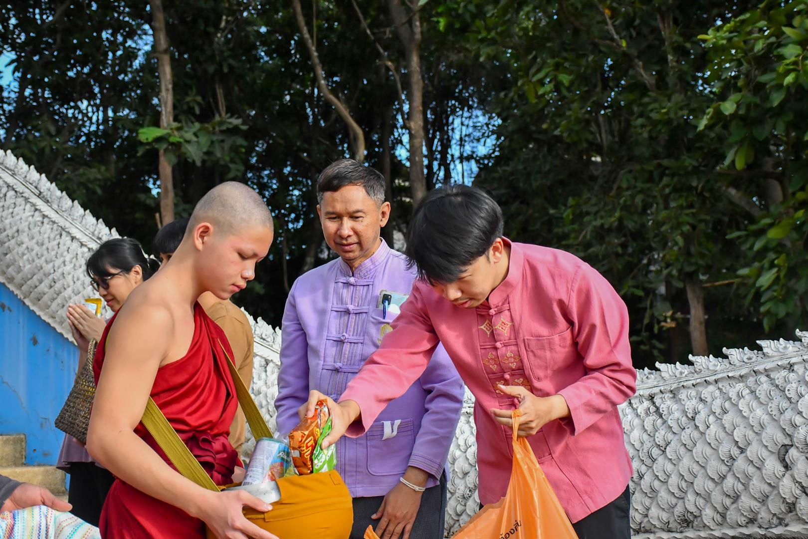 วิทยาลัยการศึกษา เข้าร่วมกิจกรรมประเพณีตักบาตรเทโวโรหณะ ประจำปี 2568 เมื่อวันที่ 8 ตุลาคม 2568 รองศาสตราจารย์ ดร.รักษิต สุทธิพงษ์ คณบดีวิทยาลัยการศึกษา มอบหมายให้ ผู้ช่วยศาสตราจารย์ ดร.สุนทร คล้ายอ่ำ รองคณบดีฝ่ายบริหารและพัฒนาคุณภาพนิสิต พร้อมด้วย ผู้ช่วยศาสตราจารย์ ดร.ณัฐวุฒิ สัพโส ผู้ช่วยคณบดี บุคลากรสายสนับสนุน และตัวแทนนิสิตวิทยาลัยการศึกษา เข้าร่วมกิจกรรมประเพณีตักบาตรเทโวโรหณะ ประจำปี 2568 และเสริมสร้างความเข้มแข็งด้านคุณธรรมและธรรมาภิบาลในหน่วยงาน ร่วมกับ ชุมชนตำบลแม่กา ณ วัดป่าพระอุบาลี (หน้า มจร.วิทยาเขตพะเยา) จังหวัดพะเยา ภายในกิจกรรม คณะผู้บริหาร บุคลากร และนิสิต ได้ร่วม ตักบาตรพระสงฆ์จำนวน 12 รูป บริเวณบันไดนาคหน้าพระธาตุ วัดป่าพระอุบาลี โดยมีวัตถุประสงค์เพื่อ สืบสานขนบธรรมเนียมประเพณีไทย เสริมสร้างคุณธรรมในองค์กร และสร้างความร่วมมือระหว่างมหาวิทยาลัย วัด และชุมชนตำบลแม่กา อันเป็นการบูรณาการกิจกรรมที่ส่งเสริมความสัมพันธ์อันดีระหว่าง มหาวิทยาลัย วัด ชุมชน อีกด้วย สอดคล้องกับเป้าหมายการพัฒนาที่ยั่งยืน (Sustainable Development Goals) SDG 4 การศึกษาที่มีคุณภาพ (Quality Education) SDG 16: ส่งเสริมสันติภาพและการเข้าถึงระบบยุติธรรมอย่างเท่าเทียมกัน (Peace, Justice and Strong Institutions) SDG 17 การสร้างเครือข่ายความร่วมมือระหว่างหน่วยงาน/สถาบัน (Partnerships for the Goals) ภาพ :  ประชาสัมพันธ์ วิทยาลัยการศึกษา มหาวิทยาลัยพะเยา ข้อมูล/ข่าว :   ประชาสัมพันธ์ วิทยาลัยการศึกษา มหาวิทยาลัยพะเยา เพิ่มข่าวโดย :  Khomthit.cha@up.ac.th วันที่/เวลา :8/10/2568 14:48:50 ข่าวล่าสุด | ข่าวทั้งหมด 10 ต.ค. 2568 #การบริหาร วิทยาลัยการศึกษา มอบสื่อการเรียนการสอน ให้แก่โรงเรียนบ้านจำป่าหวาย จังหวัดพะเยา 34 อ่านเพิ่มเติม 8 ต.ค. 2568 #การทำนุบำรุงศิลปวัฒนธรรม วิทยาลัยการศึกษา เข้าร่วมกิจกรรมประเพณีตักบาตรเทโวโรหณะ ประจำปี 2568 66 อ่านเพิ่มเติม 2 ต.ค. 2568 #การบริการวิชาการ วิทยาลัยการศึกษา ดำเนินกิจกรรมการพัฒนาศูนย์ความร่วมมือด้านการวิจัยเพื่อความเป็นเลิศด้านการศึกษาและการเรียนรู้ของชุมชนในพื้นที่ภูเขาสูง 119 อ่านเพิ่มเติม 2 ต.ค. 2568 #การทำนุบำรุงศิลปวัฒนธรรม วิทยาลัยการศึกษา ดำเนินกิจกรรมการสร้างเครือข่ายการส่งเสริมผลิตภัณฑ์/ภูมิปัญญาท้องถิ่นของชุมชนและสถานศึกษาเพื่อส่งเสริมเศรษฐกิจหมุนเวียน (BCG) 103 อ่านเพิ่มเติม © SE.UP.AC.TH เพิ่มข่าวประชาสัมพันธ์ สำหรับเจ้าหน้าที่ ×Close EDIT MODE
