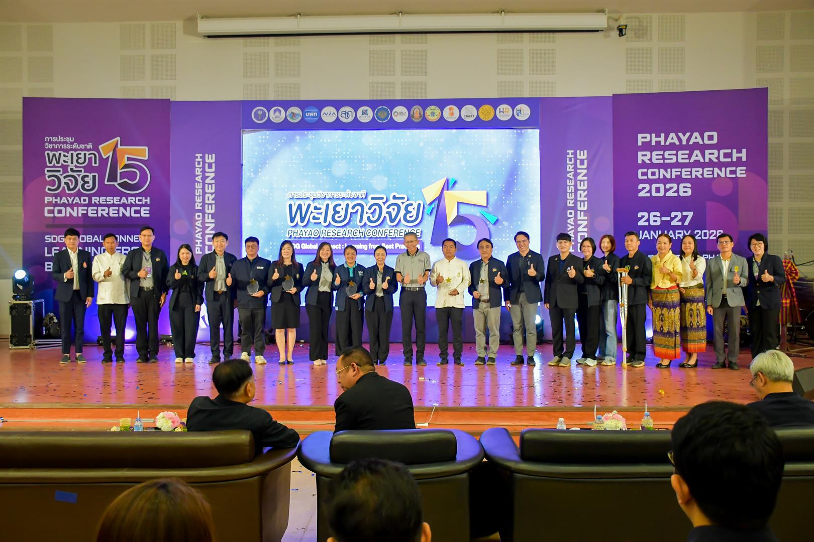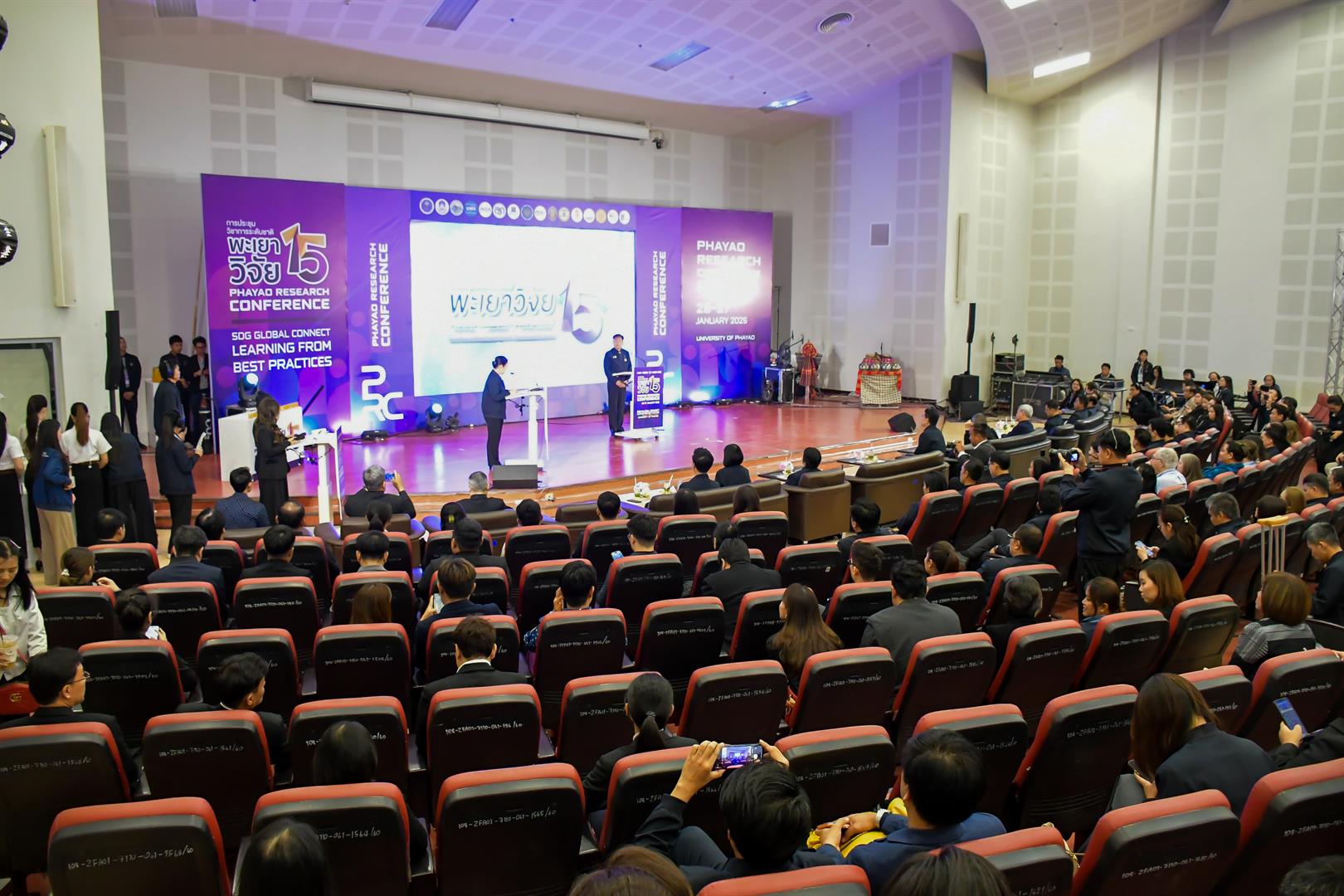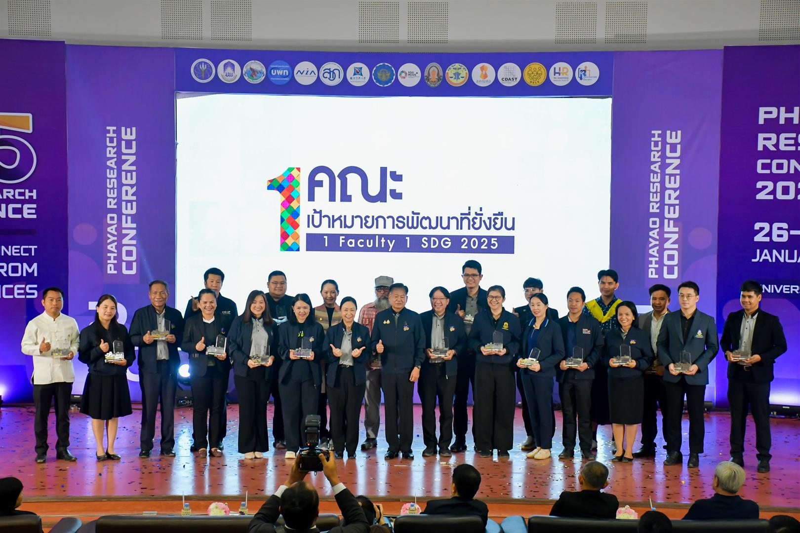 เมื่อวันที่ 27 มกราคม 2569 รองศาสตราจารย์ ดร.รักษิต สุทธิพงษ์ คณบดีวิทยาลัยการศึกษา พร้อมด้วย ผู้ช่วยศาสตราจารย์ ดร.สุนทร คล้ายอ่ำ รองคณบดีฝ่ายบริหารและพัฒนาคุณภาพนิสิต ผู้ช่วยศาสตราจารย์ ดร.วัชระ จตุพร รองคณบดีฝ่ายวิจัยและบริการวิชาการเชิงพื้นที่ ผู้ช่วยศาสตราจารย์ ดร.น้ำฝน กันมา รองคณบดีฝ่ายวิชาการและนวัตกรรมการศึกษา ผู้ช่วยศาสตราจารย์ ดร.ณัฐวุฒิ สัพโส ผู้ช่วยคณบดี คณาจารย์ และบุคลากรสายสนับสนุน เข้าร่วมการประชุมวิชาการระดับชาติ “พะเยาวิจัย ครั้งที่ 15” ภายใต้หัวข้อ “SDG Global Connect : Learning from Best Practices” ณ ห้อง UB002 อาคาร 99 ปี พระอุบาลีคุณูปมาจารย์ (ปวง ธมฺมปญฺโญ) มหาวิทยาลัยพะเยา โดยมี ศาสตราจารย์พิเศษอรรถพล ใหญ่สว่าง นายกสภามหาวิทยาลัยพะเยา เป็นประธานในพิธีเปิด และรองศาสตราจารย์ ดร.สุภกร พงศบางโพธิ์ อธิการบดีมหาวิทยาลัยพะเยา กล่าวรายงานวัตถุประสงค์การจัดงาน ซึ่งการประชุมดังกล่าวจัดขึ้นเพื่อเป็นเวทีแลกเปลี่ยนเรียนรู้ประสบการณ์ทางวิชาการ เปิดโอกาสให้มีการเผยแพร่ผลงานวิจัยสู่สาธารณะ และส่งเสริมการผลิตผลงานวิจัยที่มีคุณภาพของคณาจารย์ นักวิจัย บุคลากร และนิสิตนักศึกษา รวมถึงหน่วยงานภาครัฐ เอกชน และภาคประชาสังคม