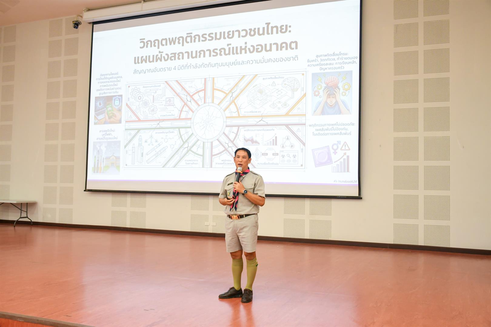 วันที่ 28 มีนาคม 2569 เวลา 14.00 น. วิทยาลัยการศึกษา ดำเนินโครงการกิจกรรมเสริมความเป็นครูและกิจกรรมเสริมทางวิชาชีพตามมาตรฐานวิชาชีพคุรุสภา กิจกรรมที่ 2 การส่งเสริมกิจกรรมลูกเสือและผู้นำเกมนันทนาการ ชีวิต ณ UB004 อาคาร 99 ปี พระอุบาลีคุณูปมาจารย์ มหาวิทยาลัยพะเยา โดยมี รองศาสตราจารย์ ดร.รักษิต สุทธิพงษ์ คณบดีวิทยาลัยการศึกษา เป็นประธานกล่าวเปิดโครงการฯ พร้อมด้วย ผู้ช่วยศาสตราจารย์ ดร.ณัฐวุฒิ สัพโส อาจารย์เมทิกา เลิศปฐมา ผู้ช่วยคณบดี หัวหน้างาน บุคลากรสายสนับสนุน ตลอดจนสโมสรนิสิต และนิสิตชั้นปีที่ 1 วิทยาลัยการศึกษา เข้าร่วมกิจกรรมอย่างพร้อมเพรียง ภายในกิจกรรมได้รับเกียรติจาก ครูกฤษฎา ยะรินทร์ ครูชำนาญการพิเศษ โรงเรียนเทศบาล 1 (พะเยาประชานุกูล) เป็นวิทยากรบรรยายให้ความรู้ในหัวข้อ “ความสำคัญของวิชาลูกเสือ” และ “ความสำคัญและความจำเป็นในการฝึกอบรมลูกเสือ” ซึ่งเป็นสาระสำคัญในการเสริมสร้างความเข้าใจเกี่ยวกับบทบาทของกิจกรรมลูกเสือในการพัฒนาผู้เรียน การจัดโครงการในครั้งนี้มีวัตถุประสงค์เพื่อให้นิสิตชั้นปีที่ 1 วิทยาลัยการศึกษา มีความรู้ความเข้าใจเกี่ยวกับความสำคัญของวิชาลูกเสือในฐานะกระบวนการพัฒนาผู้เรียนอย่างรอบด้าน ทั้งด้านร่างกาย จิตใจ สติปัญญา และคุณธรรมจริยธรรม ตระหนักถึงความสำคัญและความจำเป็นของการฝึกอบรมลูกเสือในการพัฒนาศักยภาพตนเอง ตลอดจนสามารถนำความรู้ไปประยุกต์ใช้ในการจัดการเรียนรู้ได้อย่างเหมาะสม อีกทั้งยังส่งเสริมเจตคติที่ดีต่อวิชาลูกเสือ และสร้างแรงจูงใจในการมีส่วนร่วมในการจัดกิจกรรมลูกเสืออย่างมีคุณภาพ สอดคล้องกับเป้าหมายการพัฒนาที่ยั่งยืน (Sustainable Development Goals) SDG 4: ส่งเสริมโอกาสในการเรียนรู้ สร้างการศึกษาที่มีคุณภาพและเท่าเทียม (Quality Education) และSDG 16 : สันติภาพ ความยุติธรรม และสถาบันที่เข้มแข็ง (Peace, Justice and Strong Institutions)