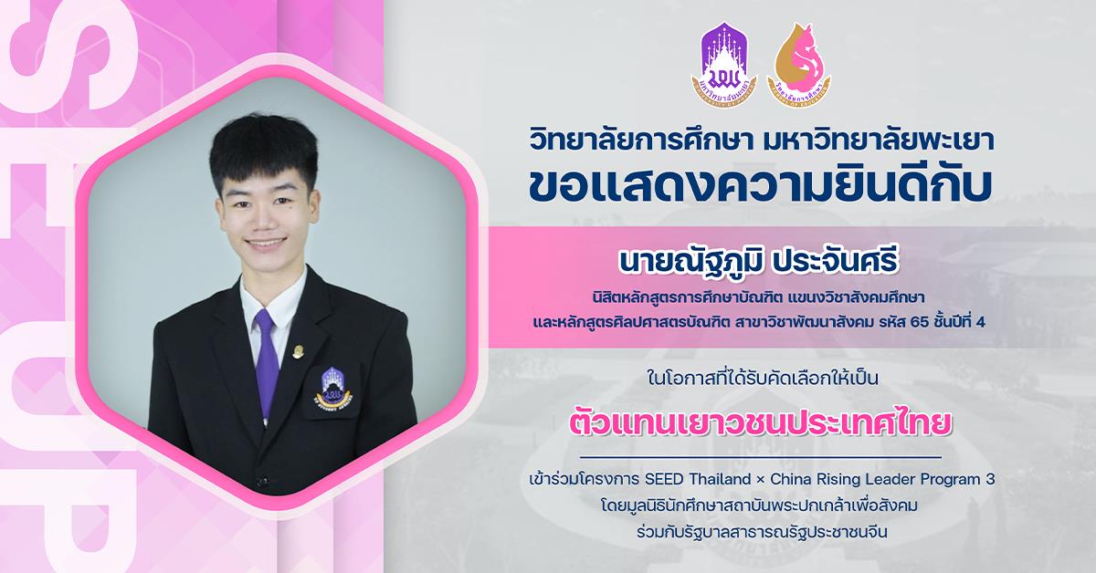 3 ต.ค. 2568 ขอแสดงความยินดีกับ นายณัฐภูมิ ประจันศรี ในโอกาส ที่ได้รับคัดเลือกให้เป็น ตัวแทนเยาวชนประเทศไทย เข้าร่วมโครงการ SEED Thailand X China Rising Leader Program 3 49 อ่านเพิ่มเติม
