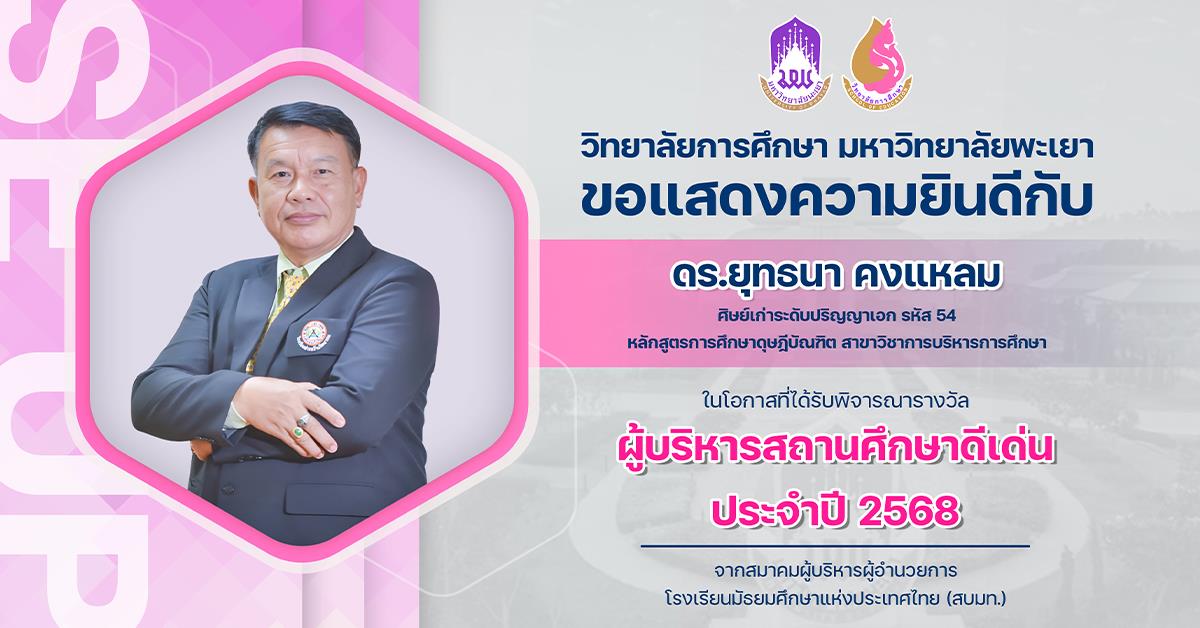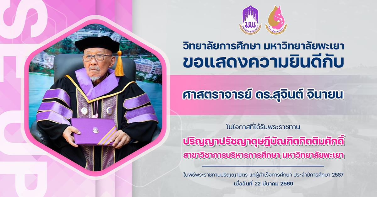 23 มี.ค. 2569 วิทยาลัยการศึกษา ขอแสดงความยินดีกับ ศาสตราจารย์ ดร.สุจินต์ จินายน ในโอกาสที่ได้รับพระราชทาน ปริญญาปรัชญาดุษฎีบัณฑิตกิตติมศักดิ์ สาขาวิชาการบริหารการศึกษา มหาวิทยาลัยพะเยา 125 อ่านเพิ่มเติม