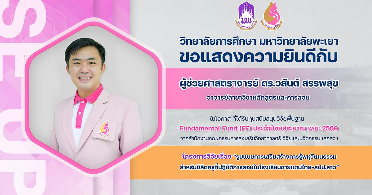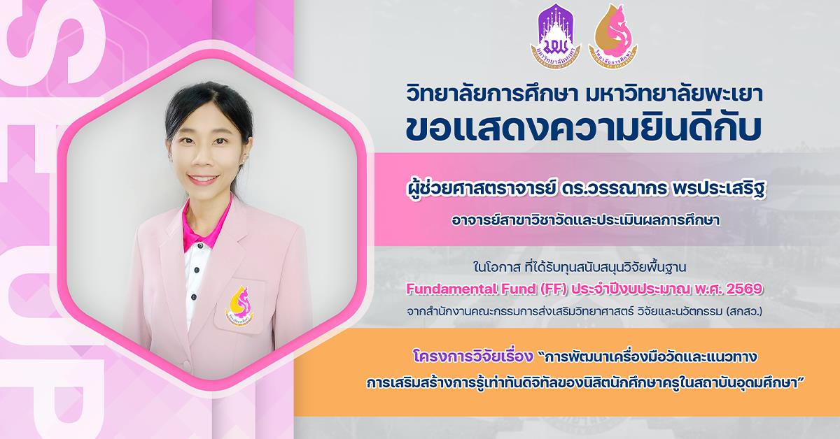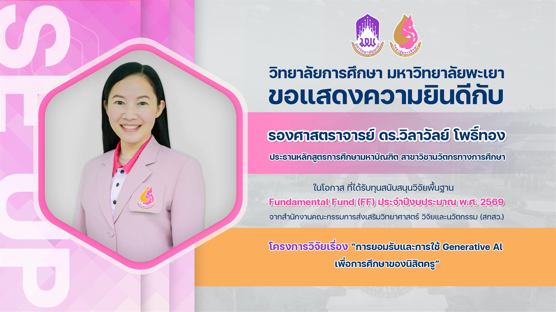 19 ก.ย. 2568 ขอแสดงความยินดีกับ รองศาสตราจารย์ ดร.วิลาวัลย์ โพธิ์ทอง ในโอกาสที่ได้รับทุนสนับสนุนวิจัยพื้นฐาน Fundamental Fund (FF) ประจำปีงบประมาณ พ.ศ. 2569 50 อ่านเพิ่มเติม