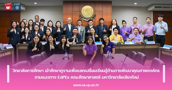 30 ก.ย. 2568 #การบริหาร วิทยาลัยการศึกษา เข้าศึกษาดูงานเพื่อแลกเปลี่ยนเรียนรู้ด้านการพัฒนาคุณภาพองค์กร ตามแนวทาง EdPEx คณะศึกษาศาสตร์ มหาวิทยาลัยเชียงใหม่ 128 อ่านเพิ่มเติม